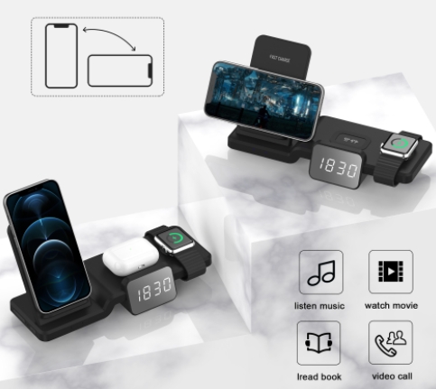 多功能立式快充座充无线充支架桌面带时钟显示三合一无线充电器